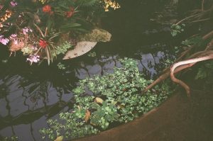 This is my favourite shot of the whole day and especially, my favourite 35mm shot. I love the green and how it stands out against the almost blackness of the pond water. The red of the flowers above stand out too which makes this shot so romantic and dewy with the almost misty filter. My camera is a AW818 and it gives this misty filter on my shots which I have fallen in love with.
