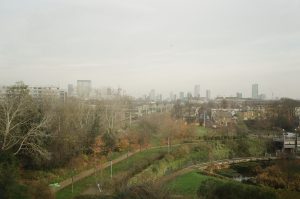 This is later in October. It’s a shame we didn’t get all the pumpkins lit up, but I think given the variety in the carvings, the darkness outside, and the bottles behind them, it all works as a complete composition. The second photo was shot from the kitchen window, honestly just on a whim. Seeing ‘skyline’ photography that isn’t all dramatic skies and towering structures is a nice change of pace. Without the Orbit in the background, we could be pretty much anywhere.