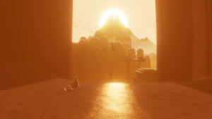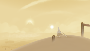 As the name suggests, Journey is a game about pilgrimage. It takes inspiration from a variety of religious beliefs to create a unique spiritual journey for the player to unravel. It balances these themes carefully to make the experience feel universal, not bound to a single belief system. Throughout the game, inspiration is taken from Abrahamic religions such as Judiasm, Christianity and Islam. Each of these religions have a rich history of pilgrims journeying to the holy lands to complete a spiritual awakening, or witness a physical manifestation of their faith. For example, the starlight at the mountain’s peak is clearly reminiscent of the North Star that guides the three wise men to Bethlehem in the nativity of Jesus. At various stages in the game, the mountain appears to eject shooting stars which you later learn are other players like yourself, who upon completion are shot back to the beginning to face the journey again in an endless cycle of reincarnation and migration. These ideas are borrowed from eastern religions such as Hinduism and Buddhism. Loosely, the game can also be interpreted as an exploration of free will. Perhaps the meditating protagonist, waiting for guidance implies waiting for a divine force (the player) to lead them to sanctuary and enlightenment.